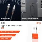 کابل تبدیل TYPE_C TO TYPE_C بیوا مدل C-20CC طول 2 مترکابل شارژ بیوا مدل C-20CC دارای قابلیت فست شارژ هست. طراحی و مواد به کار رفته در روکش کابل مانع از خمیدگی یا شکستگی آن می شود. طول کابل 2 متر است و جنس بدنه آن از TPU است. حداکثر جریانی که این کابل از خود عبور می دهد 3 آمپر است و دارای قابلیت انتقال اطلاعات است. کابل از نظر عملکرد و ساختار در میان رقبای خود یک پله بالا تر قرار گرفته است و نظر بسیاری از مخاطبان را به سمت خود جلب کرده است.